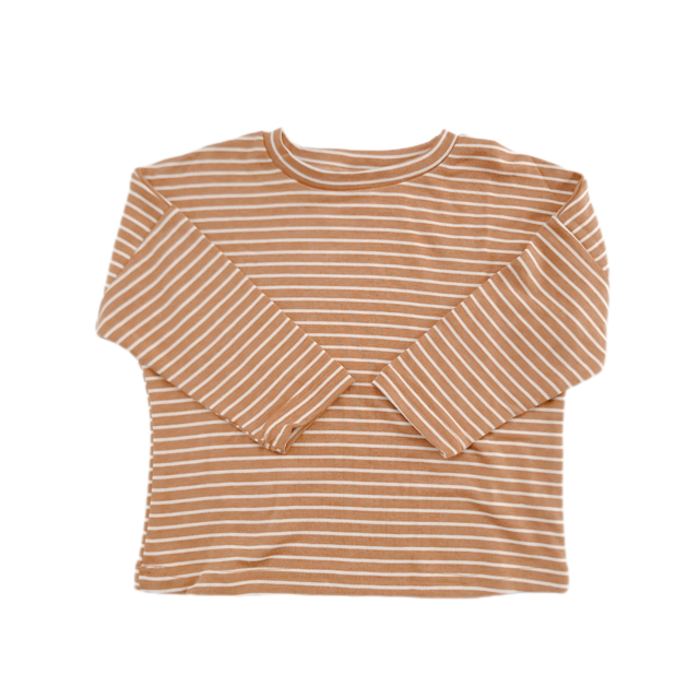 【90-130】カラー ボーダー 長袖 トップス ロンT ブラウン 韓国子供服 キッズ