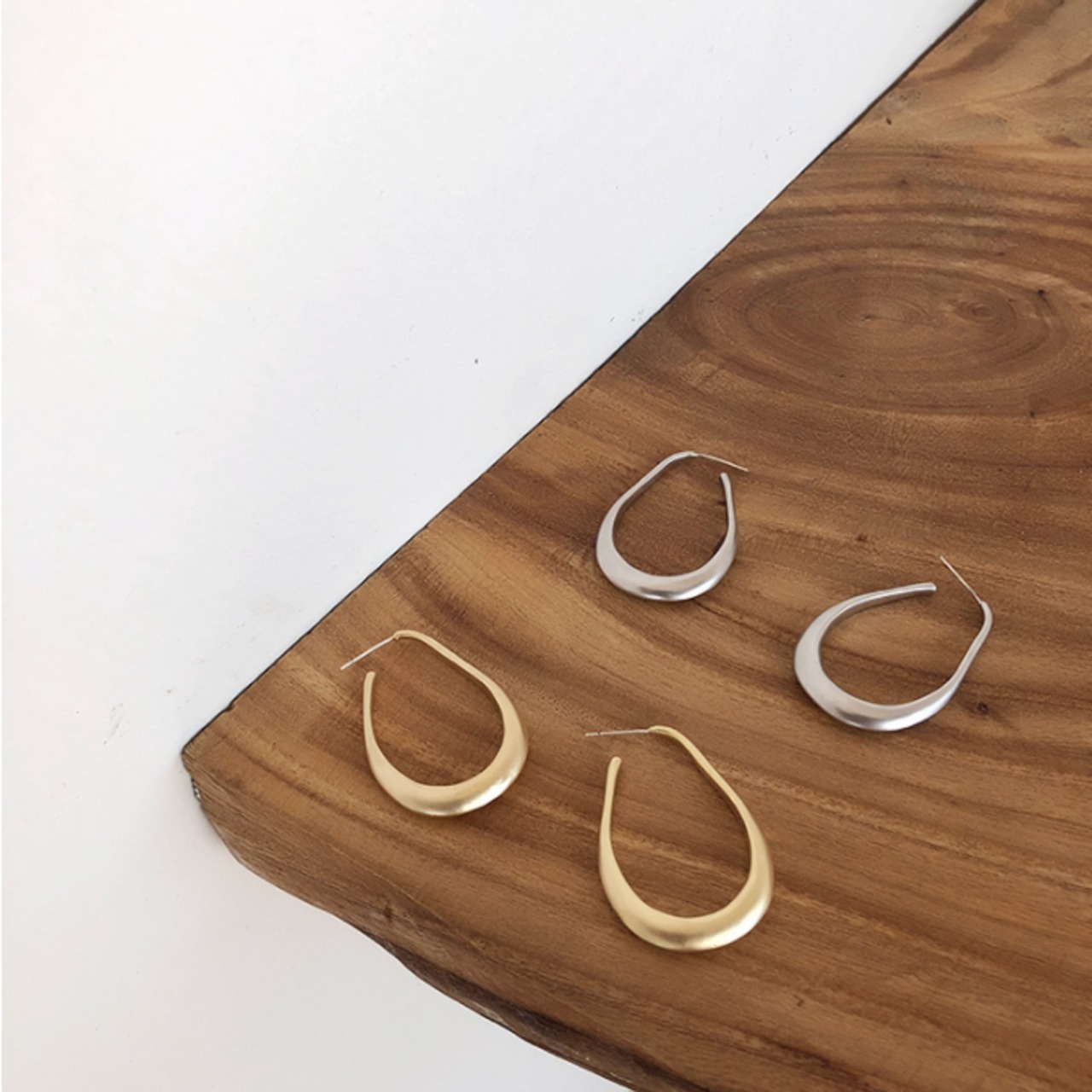 大人っぽい形のフープデザインにマットでヴィンテージっぽい質感がお洒落なピアスです。シンプルながらもしっかりと華やかさをプラスしてくれるアイテムです。