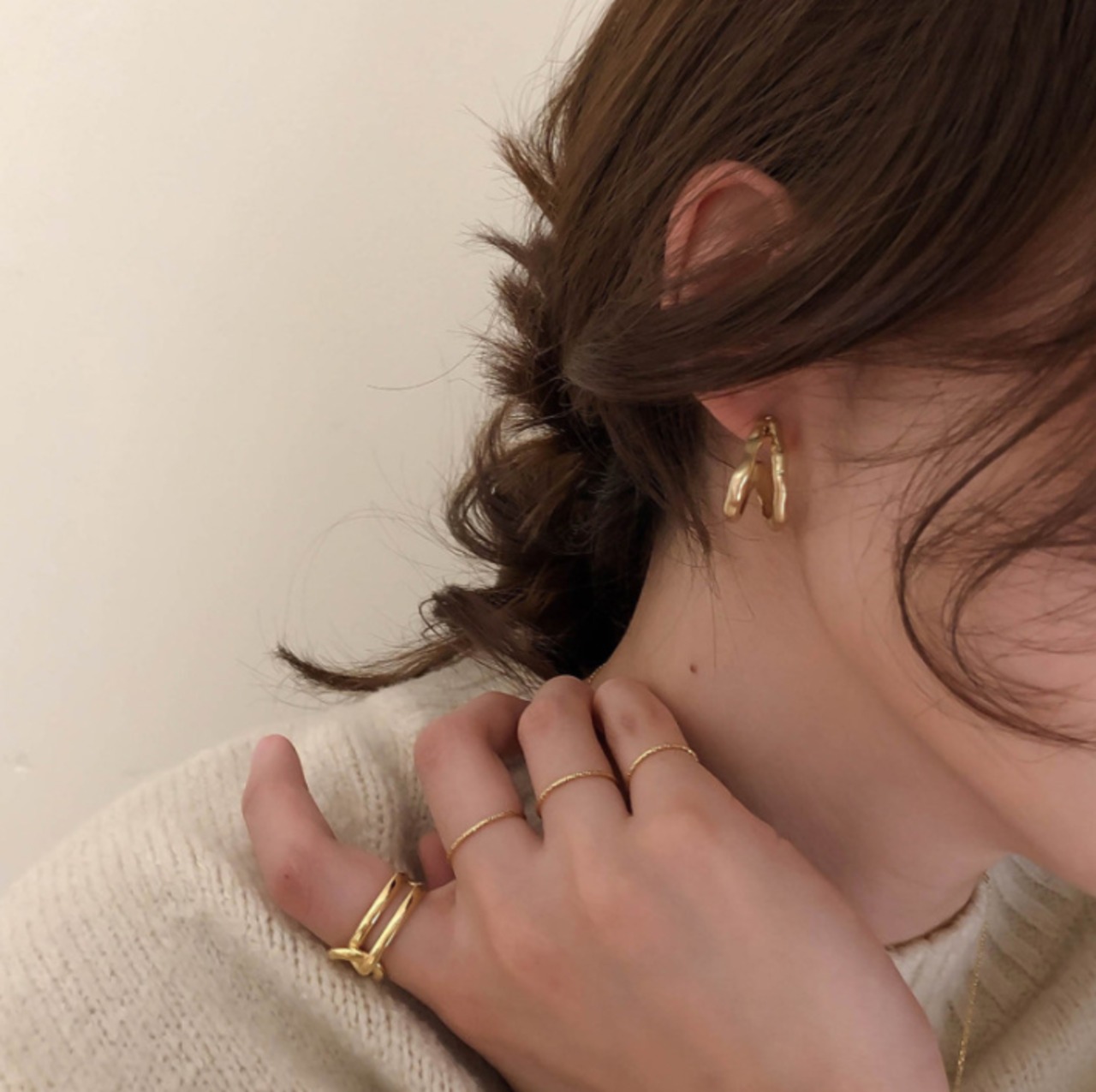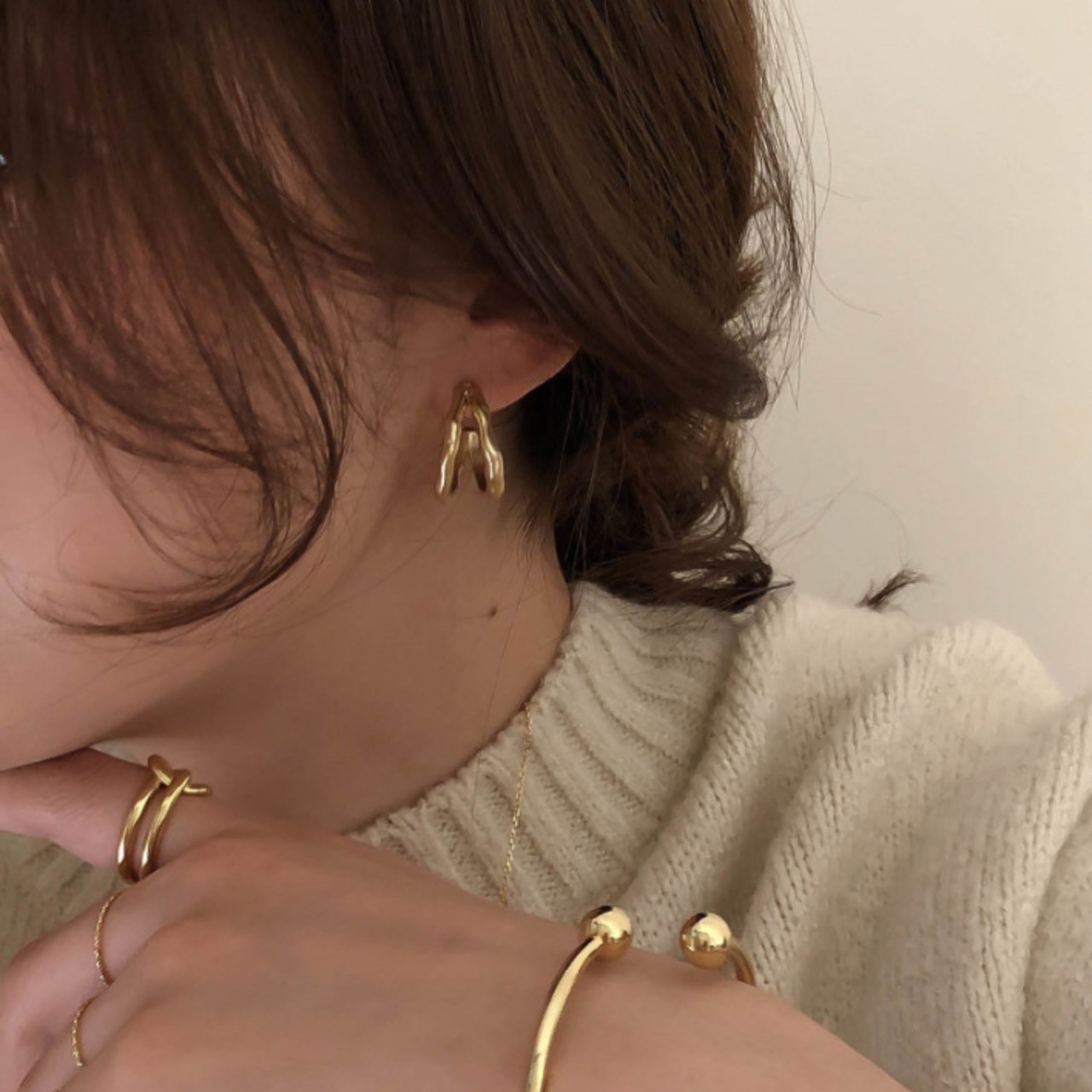光沢を抑えたヴィンテージ調の質感でダブルデザインがお顔周りを程よく華やかにしてくれます。