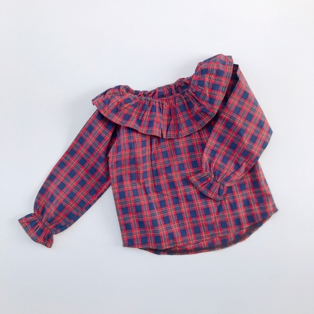 ☑checked frill blouse(red)